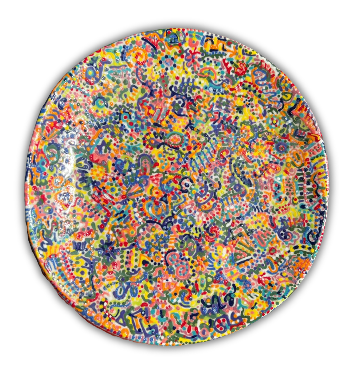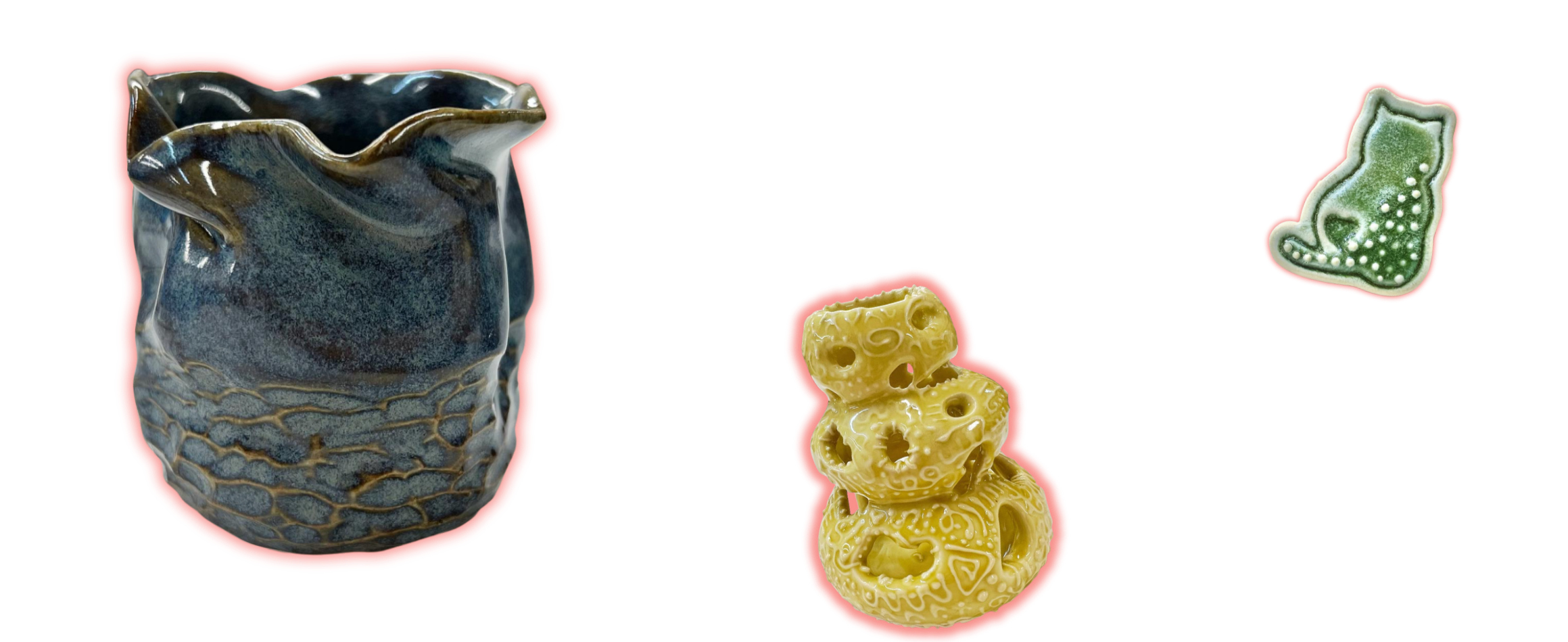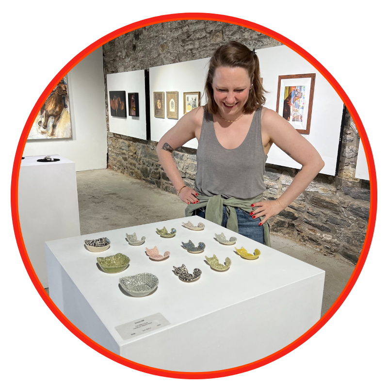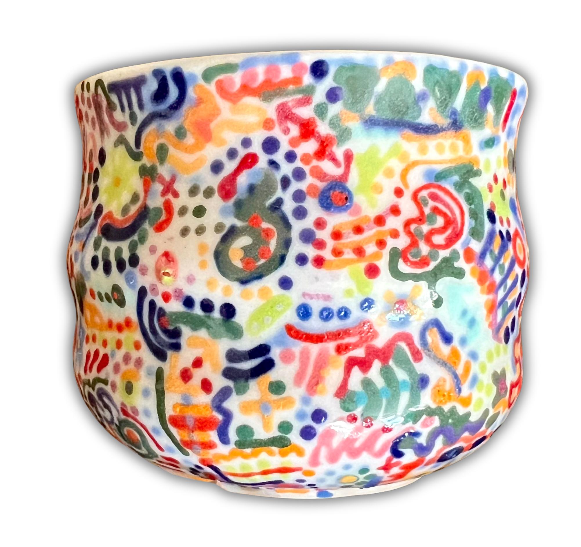 Emma is a porcelain-first ceramic artist whose work blends saturated color, abstract shapes, and fine pattern work.